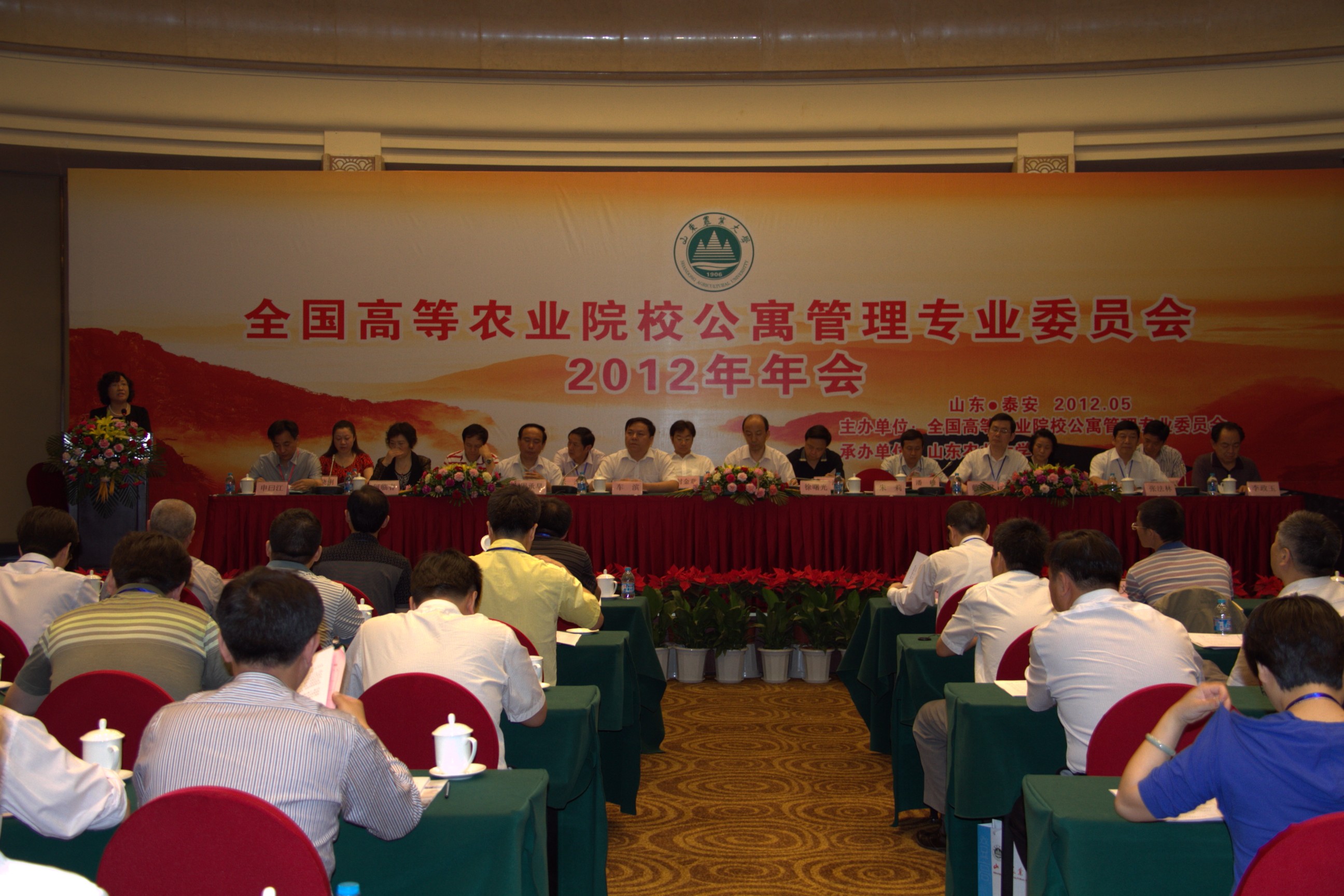 5月25日至26日,由全国高等农业院校寓专委主办、山东农业大学承办的全国高等农业院校公寓管理专业委员会2012年年会在泰山脚下召开,来自全国 28 所农业院校的90余名代表参会。经过与会代表及全体会务人员的共同努力,顺利完成各项会议日程,大会取得圆满成功。
