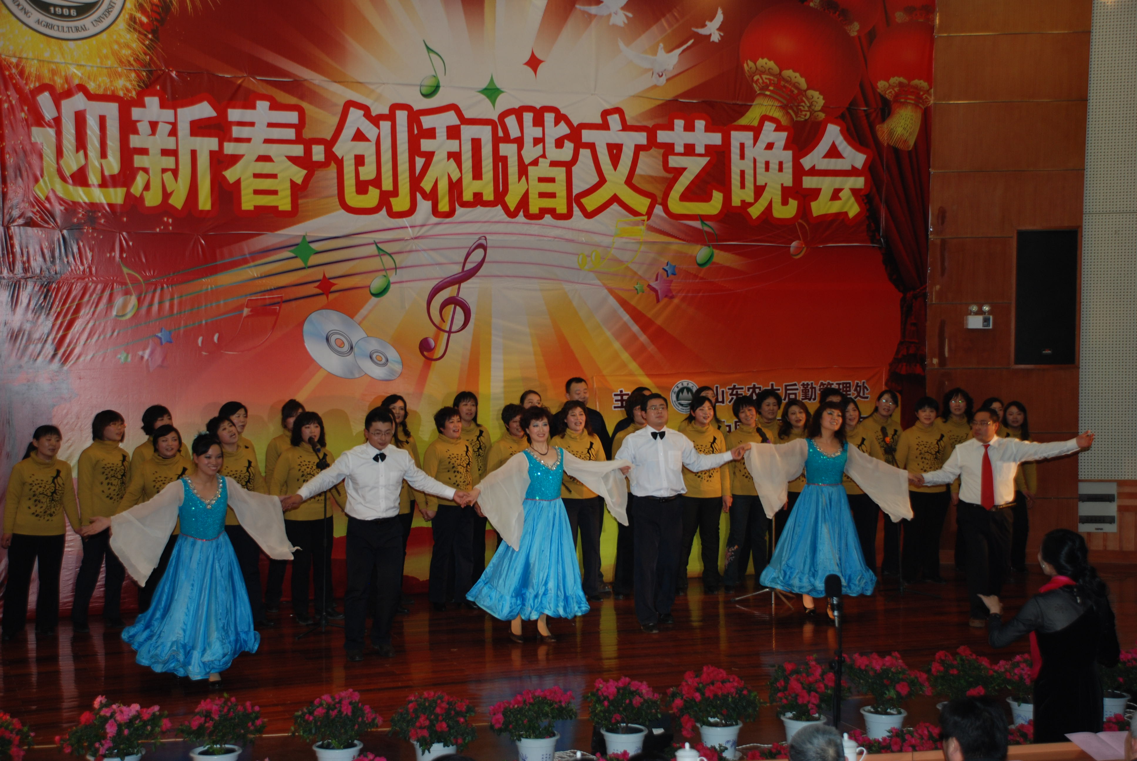 1月24日晚,文理大楼学术报告厅鲜花盛开,华灯璀灿,后勤处举办的“迎新春创和谐文艺晚会”在此举行,学校领导苗仲华、周林、董新胜、朱莉,学校离退休老领导刘洪森、吴绍麟,学校有关部门负责人,与后勤职工同庆佳节、共迎新春。