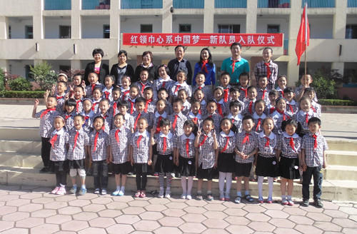 5月20日上午阳光明媚,万里无云。在悠扬的少先队队歌中,附校隆重举行"红领巾心系中国梦"新队员入队仪式,一年级110名小同学光荣地加入了中国少年先锋队,戴上了鲜艳的红领巾。
