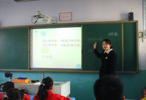 泰安市实验学校张艳老师讲授的是《因数和倍数》一课,运用数形结合的思想,借助摆图形来引入因数和倍数,引导学生探索找因数的方法,教会学生有序思考,最后总结规律。在游戏中,同学们体会到了数字的意义与趣味。泰安师范附属学校张明睿老师为全体老师呈现的课程内容是《平面内两条直线的位置关系》。张老师用马小虎的斜拉桥设计图情境引入,使学生对斜拉桥里藏着的学问即两条直线的位置关系产生了强烈的探究欲望,整堂课,让学生经历了实际操作——观察分类——理解建构的过程,学生们饶有兴趣地观察、操作、想象,不但深刻领悟了所学知识,分析、探究能力及空间观念都在活动中得以有效发展。原本人为规定的数学知识,在学生的自主参与和建构中获得了更为鲜活的意义。