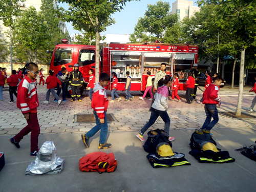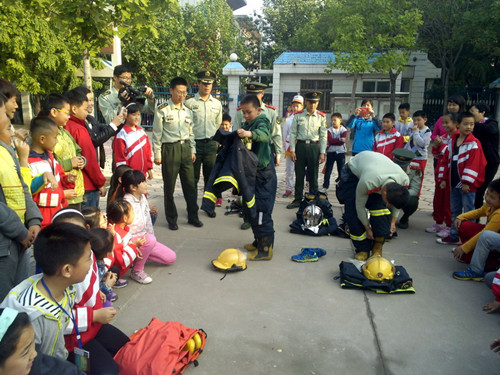活动现场,泰安市消防支队泰山区大队的消防官兵及消防志愿者们首先对全体同学进行了消防安全教育讲座。讲述了消防知识,在什么时候容易发生怎么样的意外事故,在事故发生后怎样用科学有效的方法逃生和救火,并强调了本次消防演练的重要性和必要性。之后进行了实地消防逃生演练,由消防官兵们现场演示消防设备的使用,同学们积极踊跃的参与活动,实践和理论的结合使他们更深刻地认识了消防演习的重要性。