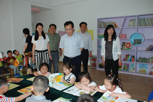 徐剑波在听取李红岩园长的园况介绍后,参观了幼儿的“我的六一我的梦”作品展,走进教室与幼儿交流互动,询问幼儿生活、学习情况。对老师们辛勤的工作给予赞赏,对幼儿园的各项工作给予肯定,强调幼儿园要以安全工作为重,为学校教职工子女提供良好的育人环境,打造农大幼儿园优质品牌。
