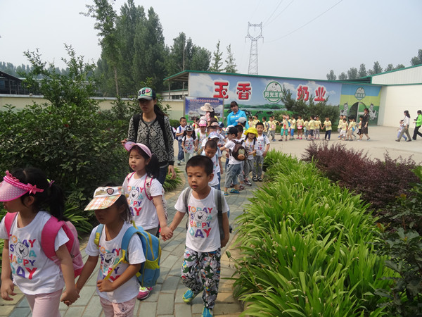 6月17日上午9点,幼儿园中大班的小朋友乘坐亚奥特乳业的班车,在亚奥特乳业工作人员的带领下参观了省庄亚奥特奶牛养殖基地。