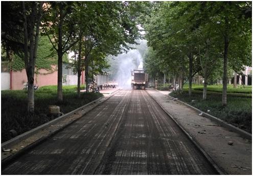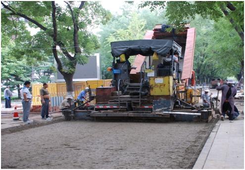 •铺设沥青路面与混凝土路面