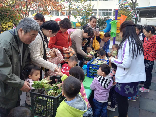 农大幼儿园“认知园”里的蔬菜成熟了!为丰富幼儿角色体验,提高幼儿的社会交往能力,培养幼儿乐于助人、乐于奉献的品质,体验奉献带来的快乐,幼儿园于1029日下午4点,在园举行“认知园”采卖活动。