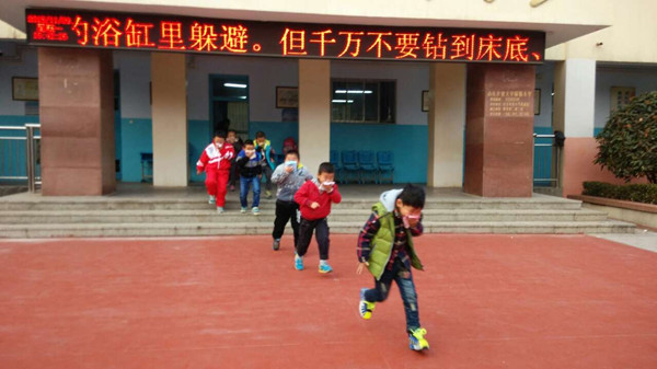 演练前,学校制定了详细的演练方案,向全体学生讲明了演习的目的和逃生的线路、方法、注意点,以确保演练圆满成功。随着紧急疏散哨声的响起,全校师生按照预先确定好的逃生路线,用湿毛巾捂住口鼻,低下身子迅速有序撤离。演练过程中,班主任老师认真负责,各楼层值勤的老师迅速到位,认真疏导,整个疏散过程紧张有序。全校师生撤离到操场后,刘校长对本次活动进行了总结。