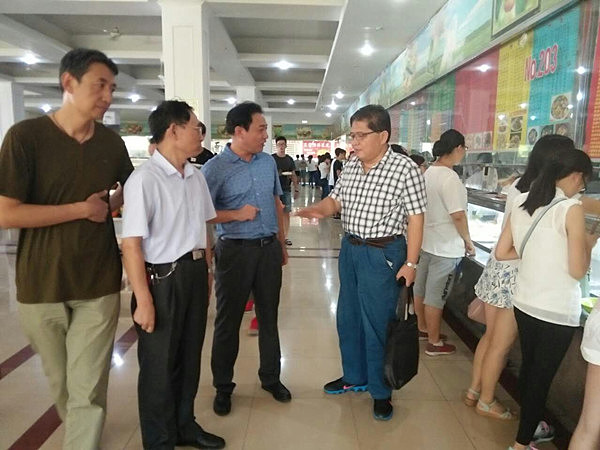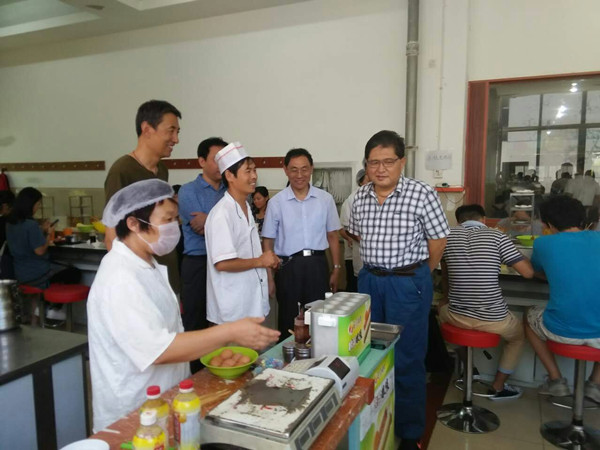 9月1日临近中午,副校长吴衍涛在后勤处处长申曰江、后勤党委书记井明伦陪同下检查饮食服务工作。
