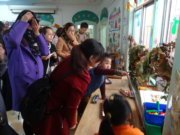 李红岩园长首先向大家介绍了幼儿园的基本情况及办园特色,之后李红岩园长和吕秀云副园长带领大家参观了各班的环境创设、文化长廊、及各班开展的区域活动。让高唐县公办幼儿园园长、老师们沉浸在农大幼儿园利用农大资源、家长资源打造的绿色教育之中,深深地被幼儿园的浓厚特色氛围所感染。