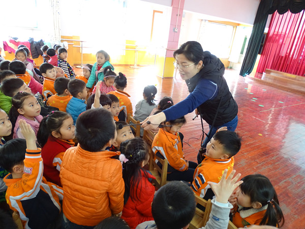 首先开讲的是大三班刘若水小朋友的妈妈,泰安市残联的王洪燕老师。王老师结合今年爱耳日“防聋治聋,精准服务”的主题,用生动形象的PPT课件,好玩的游戏,组织三个大班近100名小朋友们,开展了一次关于“保护耳朵”的教育活动。通过活动,小朋友们了解了耳朵的结构和功能、耳病的预防等爱耳知识,学习了保护耳朵和帮助听障儿童的方法,培养了爱耳、护耳意识,激发了关爱身边的听障儿童的情感。