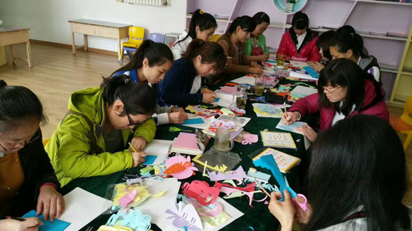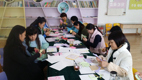 近日,我校幼儿园在图书室举行了历时两天的剪纸培训活动,由幼儿园前期外出参加剪纸培训的陈红梅等4位教师执教,全园29名教师参加。