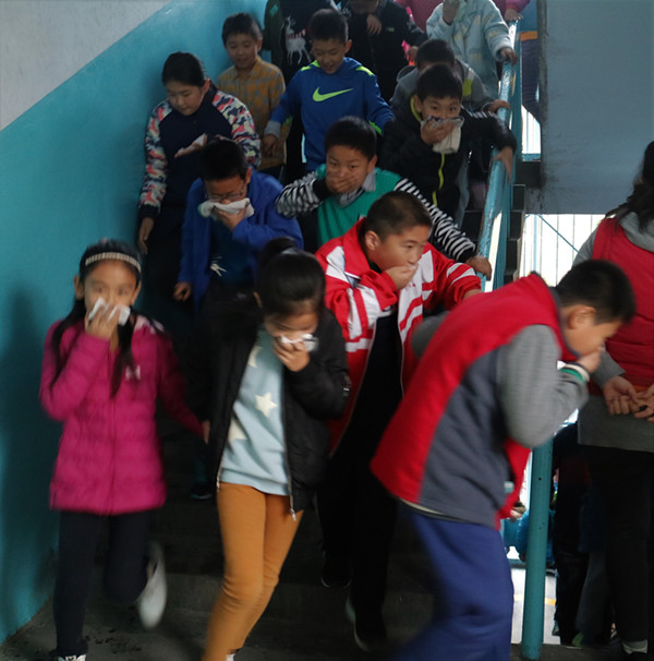 根据活动预案,11月9日下午16时,随着消防警报声的响起,全校10个班500余名师生,迅速作出反应,各班老师按照预先部署一前一后组织孩子安全有序地撤离。各班学生也迅速用湿毛巾捂住口鼻,低姿前行,向安全地带撤离。各楼层楼梯平台,台阶处都有老师负责引导,全校师生安全撤离仅用时72秒。随后,负责安全教育的老师就逃生演练进行了总结。