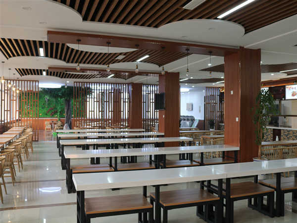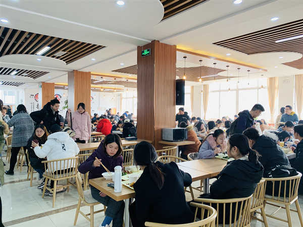 “哇,好漂亮啊”、“我们也有高颜值餐厅了”......柔和的灯光下,白色大理石桌子配上古朴的板凳井然有序的排列着,一盆盆绿植带来盎然生机,映入眼帘的“拼搏、态度、勤奋、求知”文化墙展现着农大学子的精神风貌,精巧的泰山石上镌刻着“登高必自”的校训……新学期第一天,南校区的同学们纷纷被焕然一新的餐厅吸引住了眼球。