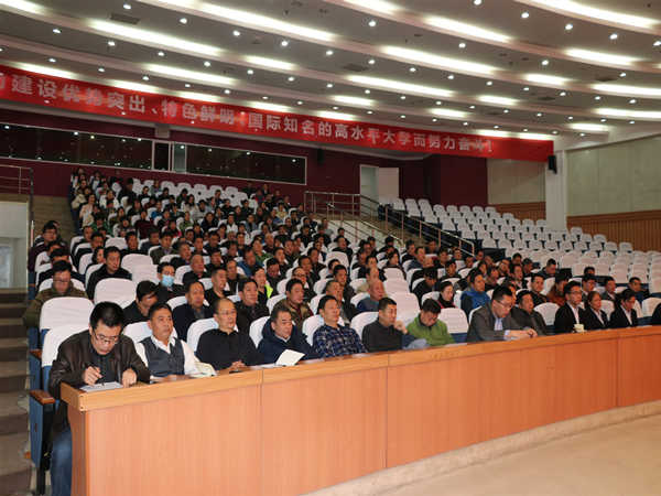 后勤党委书记陈向昕主持会议。后勤处班子成员、全体教职工及为学校提供后勤服务保障的单位负责人共计180余人参会。