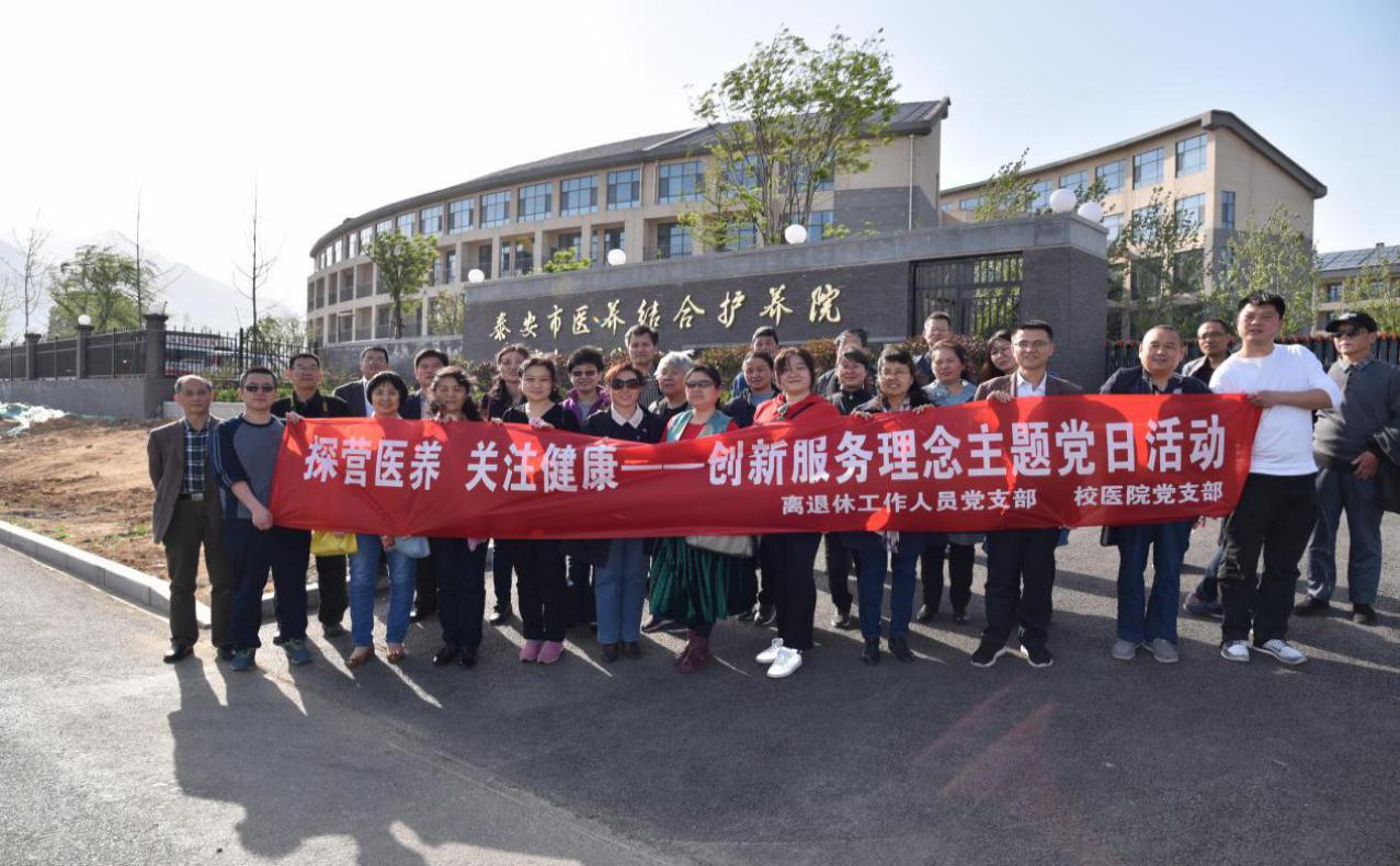 4月17日,离退休工作人员党支部与校医院党支部联合开展“探营医养、关注健康---创新服务理念”主题党日活动,实地参观泰安市医养结合护养院(泰安市中心医院东院)。