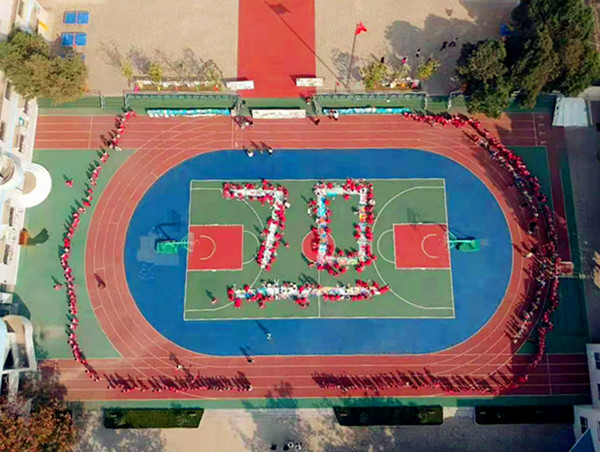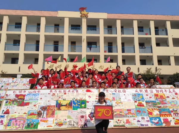 附属学校操场上,百名少年儿童在这里,以“彩笔绘童心 祖国我爱您”为主题创作百米长卷。在巨型“70”的长卷上,孩子们用最纯真的情感,描绘祖国的大好河山、刻画身边的好人好事、畅想未来的科技创新……。活动最后师生共唱《我和我的祖国》,祝福伟大祖国繁荣昌盛。