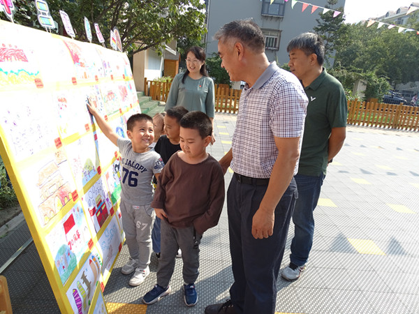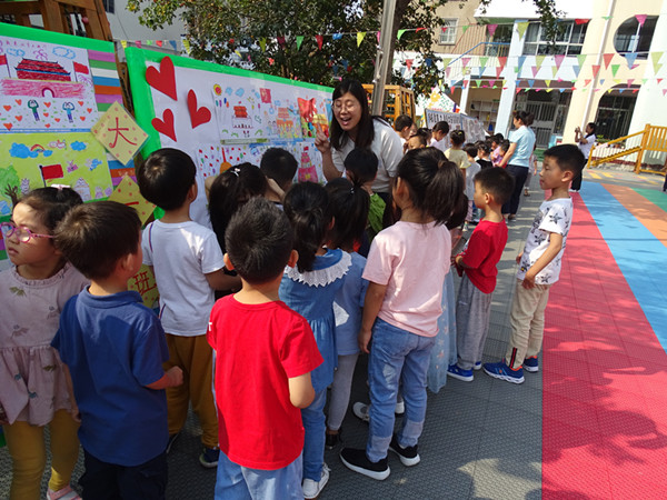 幼儿园组织小朋友们通过蜡笔画、刮蜡画、毛线画、豆类拼画、手工制作等多种形式,创作展出220余幅绘画及手工作品,表达自己对祖国妈妈的热爱。