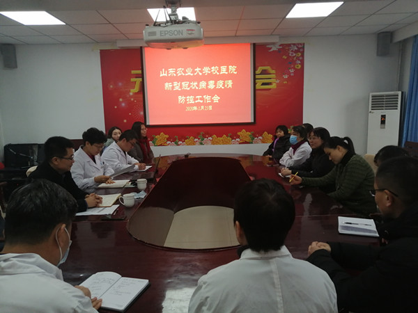 五是做好医疗卫生防控。组织校医院全体医护人员传达学习上级通知精神和《新型冠状病毒感染的肺炎诊疗方案》,编制了《校医院新型冠状病毒感染的肺炎应急预案》《山东农业大学新型冠状病毒预防手册》等,从院感防控、药品储备、传染病防护用品准备、消杀用品采购等方面积极应对当前疫情。配合泰山区卫健局做好医疗机构疫情防控医护人员后备力量储备,随时准备参加疫情防控工作。严格门诊患者登记,对发热患者实行每日逐级上报制度,有疫区接触史的患者按规定指导居家隔离,开通了24小时值班咨询电话,确保各项医疗防控措施落到实处。