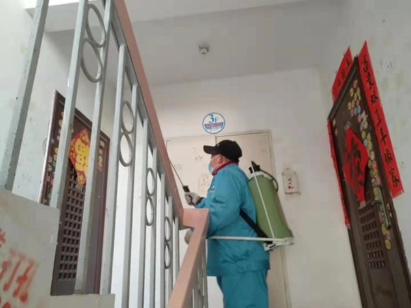 2、家属区进行卫生清理、对单元楼、垃圾投放点、垃圾中转站等重点场所进行消毒,有效降低病媒生物密度。