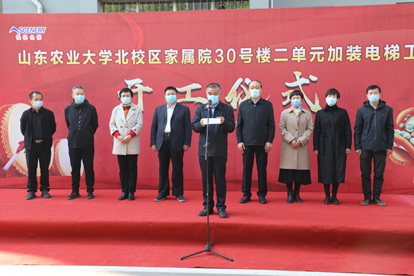 后勤管理处处长亓乐秋发表了致辞。他讲到,我校家属楼加装电梯工程是学校响应国务院、省、市老旧小区改造提升工作的重点项目,是改善居民生活环境和品质的民生工程,体现了泰安市委、市政府领导对学校建设发展的关心和对学校教职员工的厚爱。项目的顺利开工离不开市、区房屋主管部门的大力支持,离不开电梯施工单位的上下协调和广大业主的积极配合。相信通过加装电梯工作能够有效解决教职员工出行难等问题,拓展提升小区服务功能,为教职员工带来更多的获得感和幸福感。