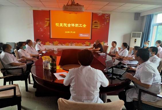 7月10日下午,校医院召开全院职工大会,会议由校医院院长杨晓霞主持。