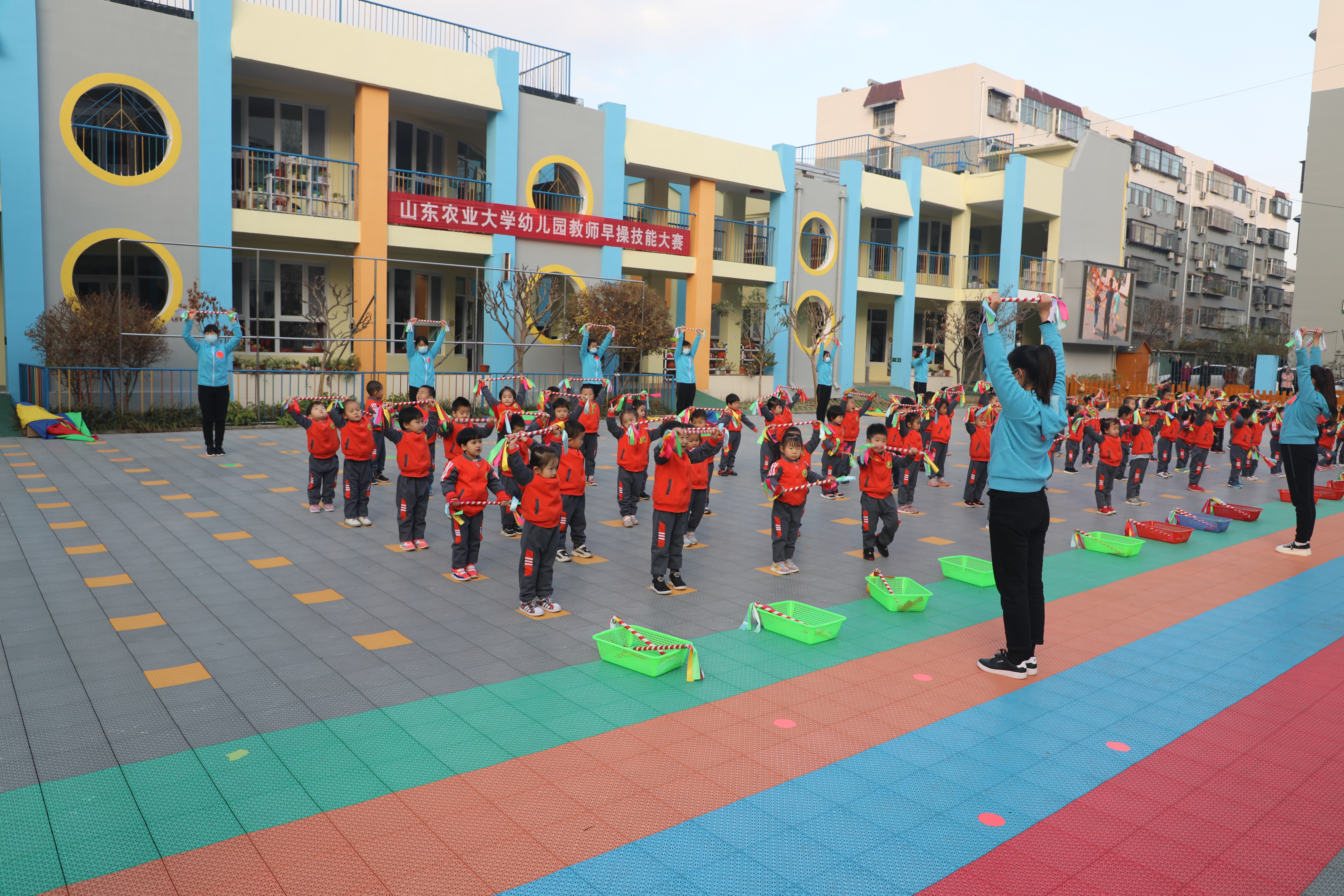 幼儿园通过师生早操比赛和彩石作品展,展示出了扎实的基本功底和教学艺术。