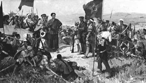 1927年10月,毛泽东率领湘赣边秋收起义的工农革命军到达罗霄山脉中段的井冈山地区,开展游击战争,进行土地革命,恢复和建立共产党的组织,建立革命政权和赤卫队。至1928年2月底井冈山革命根据地初步建成。1928年4月底,朱德、陈毅率领南昌起义保存下来的部队和湘南农军到达井冈山,和毛泽东领导的工农革命军会师,成立了中国工农红军第四军。