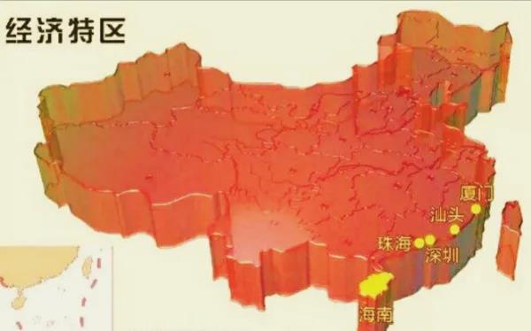 1979年7月,中共中央、国务院同意在广东省的深圳、珠海、汕头三市和福建省的厦门市试办出口特区。1980年5月,中共中央和国务院决定将深圳、珠海、汕头和厦门这四个出口特区改称为经济特区。1988年4月,设立海南经济特区。