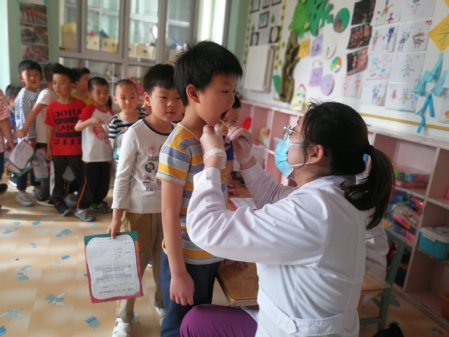 检查过程中,医生根据幼儿的口腔健康状况,讲解了爱牙、护牙小常识以及注意事项。幼儿园及时将医生的建议与家长进行交流、反馈,为幼儿口腔健康做好预防、指导工作。