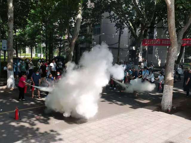 理论培训结束后,杨老师和周广全分别为大家讲解了灭火器的使用方法并进行演示,参会人员进行了现场演练。