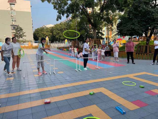 此次趣味运动会共设立5个比赛项目,包括打沙包、踢毽子、夹球跑、滚铁环、套圈。这些项目不仅有竞技性,更注重趣味性。比赛中,老师们齐心协力、奋勇争先、兴致高昂,赛场气氛活跃,加油声、呐喊声、欢笑声不绝于耳,充分展现了幼儿园教职工团结和谐、奋发向上、拼搏奉献的良好精神风貌。