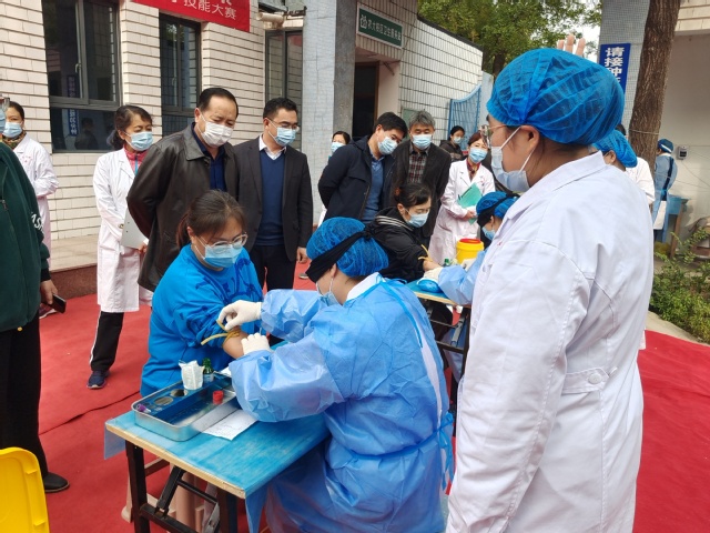 校医院以提高医疗服务水平和疫情防控能力为主旨,开展了蒙眼静脉穿刺术和穿脱防护服项目比赛,参赛医务人员高超娴熟的医疗护理能力和规范防护水平赢得了观众及评委们的阵阵掌声。
