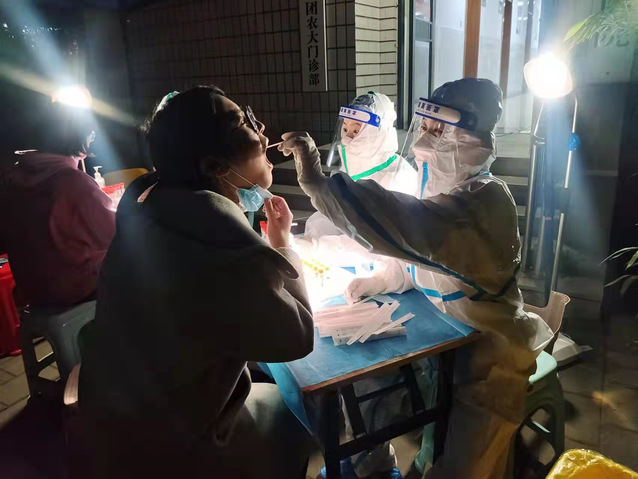 面对人员紧张,他们24小时待命,顺利完成了全校师生每天的核酸检测、患者诊治等工作任务,目前全校核酸采样已三十余万人次。他们无论风雨,顾不上家人,即使他们肩膀抬不起来、汗水浸湿防护服,不能按时吃饭、数小时不能去厕所……,但依然坚守在自己平凡的工作岗位上。