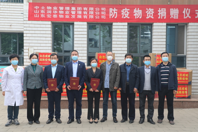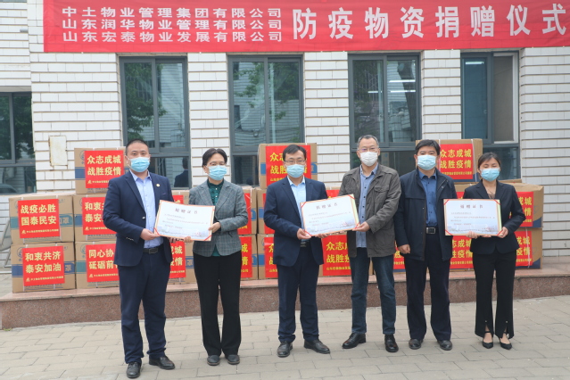 4月18日上午,中土物业管理集团有限公司、山东润华物业管理有限公司、山东宏泰物业发展有限公司等三家爱心企业向我校捐赠15万只医用口罩,助力校园疫情防控工作。