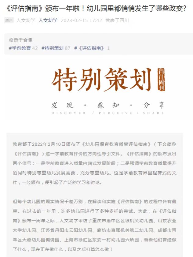 “人文幼学”是一个育儿周刊学前教育专业平台,主要关注幼儿家园共育、家长教育。日前,在教育部《幼儿园保育教育质量评估指南》颁布一周年之际,“人文幼学”采访调研了全国六所幼儿园。其中,专题报道了我校幼儿园在品德启蒙、师幼互动和专业发展等方面的典型经验和做法。