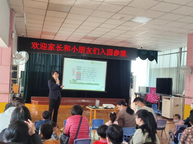 活动伊始,幼儿园园长吕秀云介绍了幼儿园校园概况、师资规模和养成教育开展等情况;随后,在幼儿园教师带领下,小朋友及家长们先后参观了一楼活动室、建构区、生态草坪、户外场地等区域。