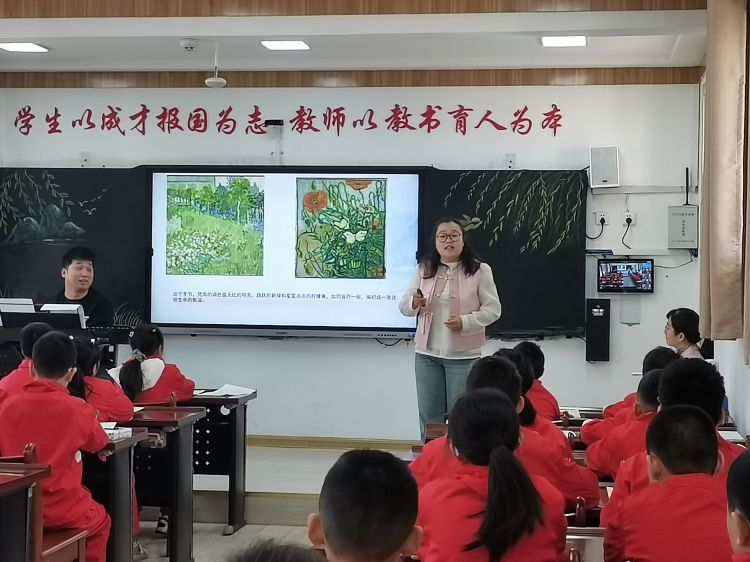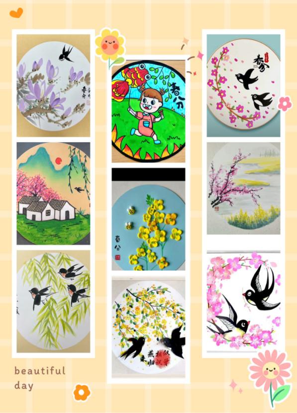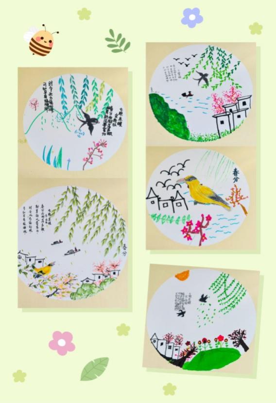 张丽丹老师从语文视角引领学生学习了宋朝诗人徐铉的古诗《七绝·苏醒》,带领学生们在诗歌中感受春分,感受春天。张兴老师适时切入音乐学习,指导学生学习了自编自创的春分歌曲《唱春分》。最后,汪飞飞老师带领学生用画笔描绘出了自己心中的春分画卷。