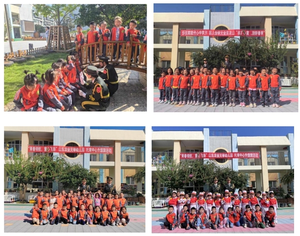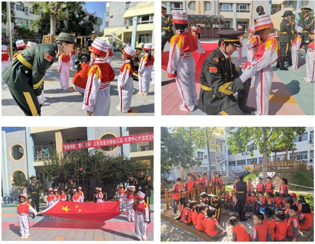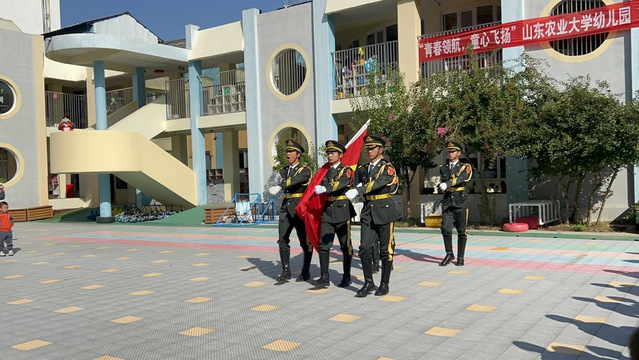 9月24日,山东农业大学幼儿园、托育中心邀请山东农业大学国旗班,走进幼儿园,开展了一场别开生面的升旗活动,并与幼儿园的小朋友们进行了亲密互动,共同学习,共同成长。