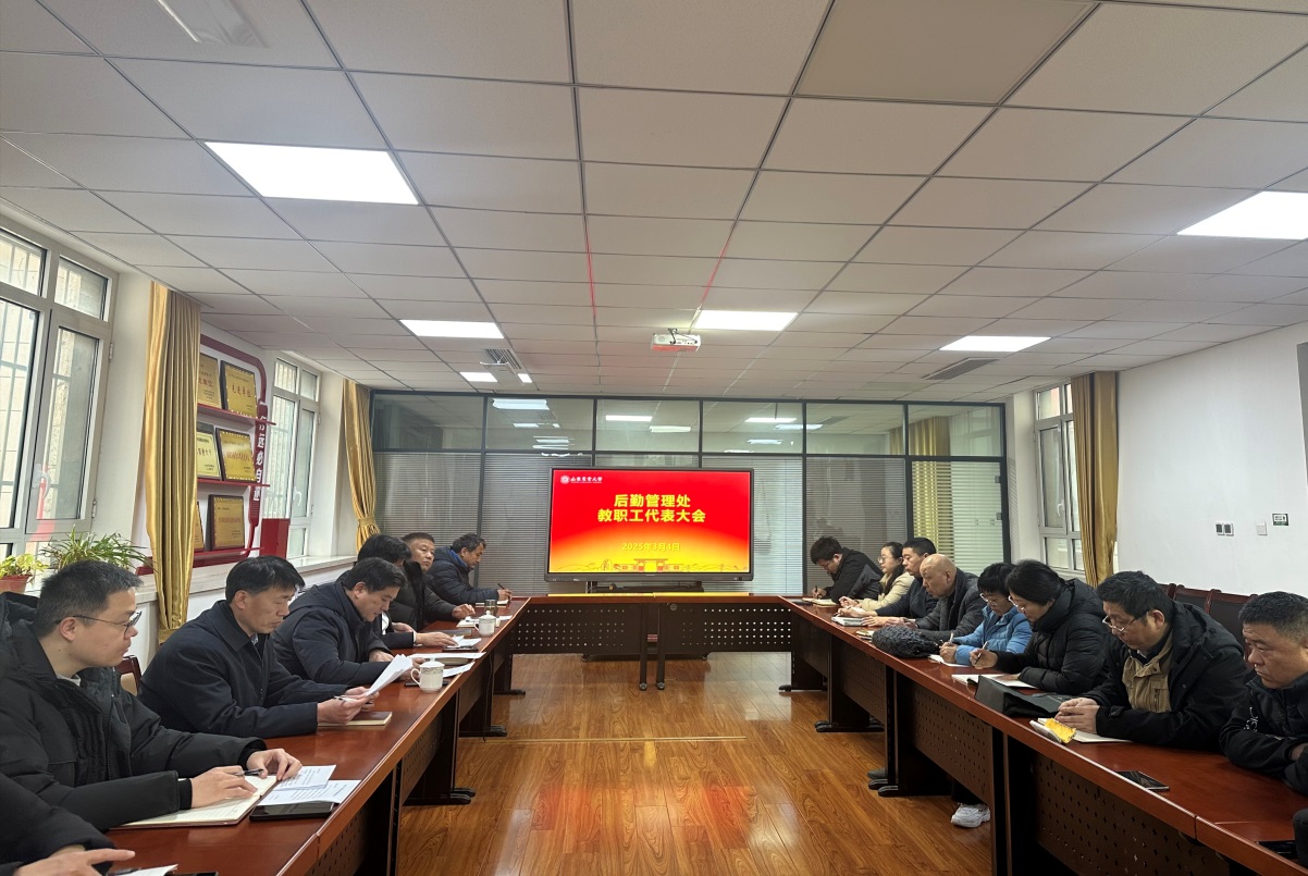 3月4日,后勤管理处在信息化大厅会议室召开教职工代表大会,全面贯彻党的二十大和二十届三中全会精神,认真落实学校第八次党代会、“十四五”发展规划相关任务,团结动员全体教职工,为学校“冲一流”建设贡献后勤力量。会议由后勤党委副书记、副处长、后勤工会主席冯润东主持,后勤管理处领导班子和全体代表参加会议。